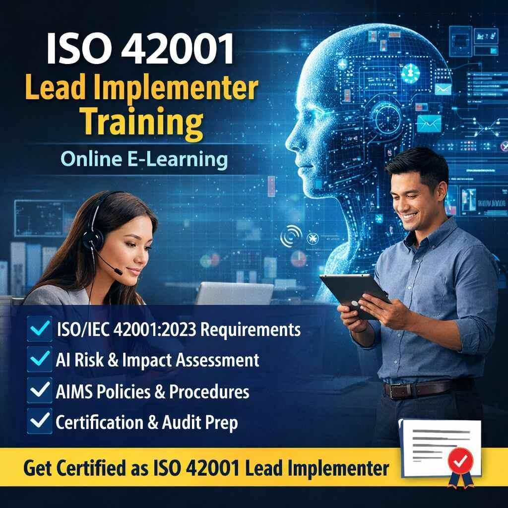 Join this industry-focused ISO 42001 Lead Implementer Training Online course and gain end-to-end expertise in ISO 42001 Artificial Intelligence Management Systems. This training empowers professionals to design, implement, and manage AIMS using international best practices.