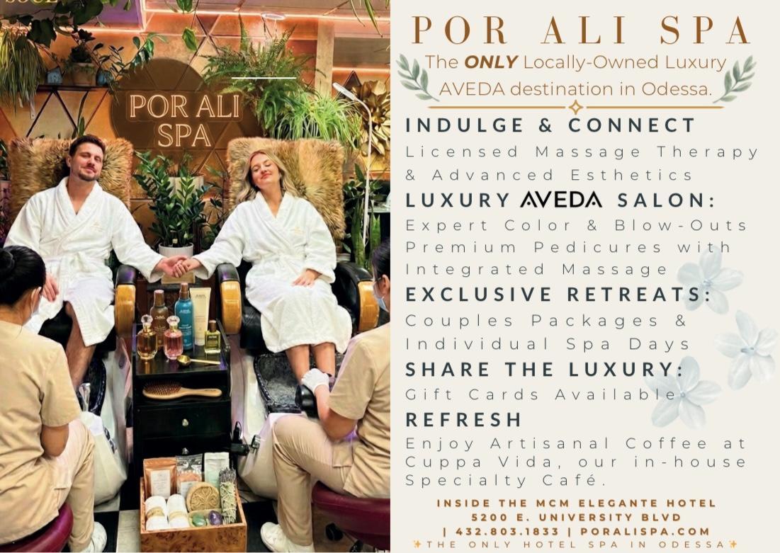 Discover the pinnacle of relaxation at Por Ali Spa, the Permian Basin’s premier wellness destination and the city’s exclusive Aveda Carrier & Spa. Located uniquely as the only luxury hotel-spa in the area, we offer a sanctuary of rejuvenation for both locals and travelers. Experience world-class massage therapy, advanced facials, and full-service hair care using eco-friendly Aveda products. Our comprehensive menu includes expert manicures, pedicures, and curated spa packages designed for total renewal. Elevate your visit at our on-site professional coffee shop, a one-of-a-kind feature providing the perfect transition from your treatment back to your day. Experience the intersection of botanical science and West Texas hospitality at Por Ali Spa.