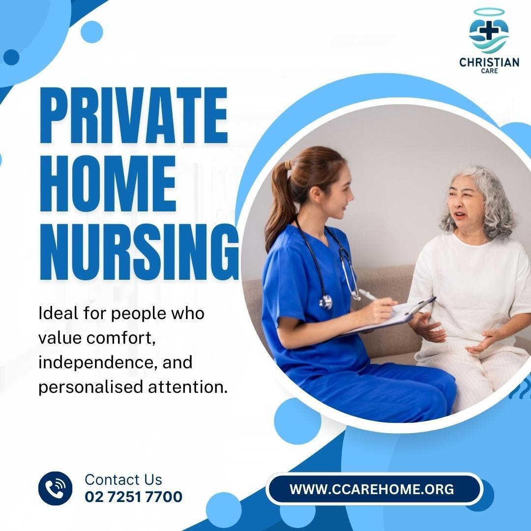Christian Care Home provides professional Private Home Nursing services tailored to meet the individual healthcare needs of clients in the comfort of their own homes. Our skilled and compassionate nurses offer personalized medical care, including wound management, medication administration, chronic disease monitoring, post-operative support, and rehabilitation assistance. We prioritize your health, comfort, and independence by creating customized nursing care plans that promote recovery and wellbeing. With Christian Care Home’s private home nursing, you receive dedicated, reliable, and respectful care designed to enhance your quality of life. Trust us to deliver expert nursing support you can count on. Contact Christian Care Home today to learn more.