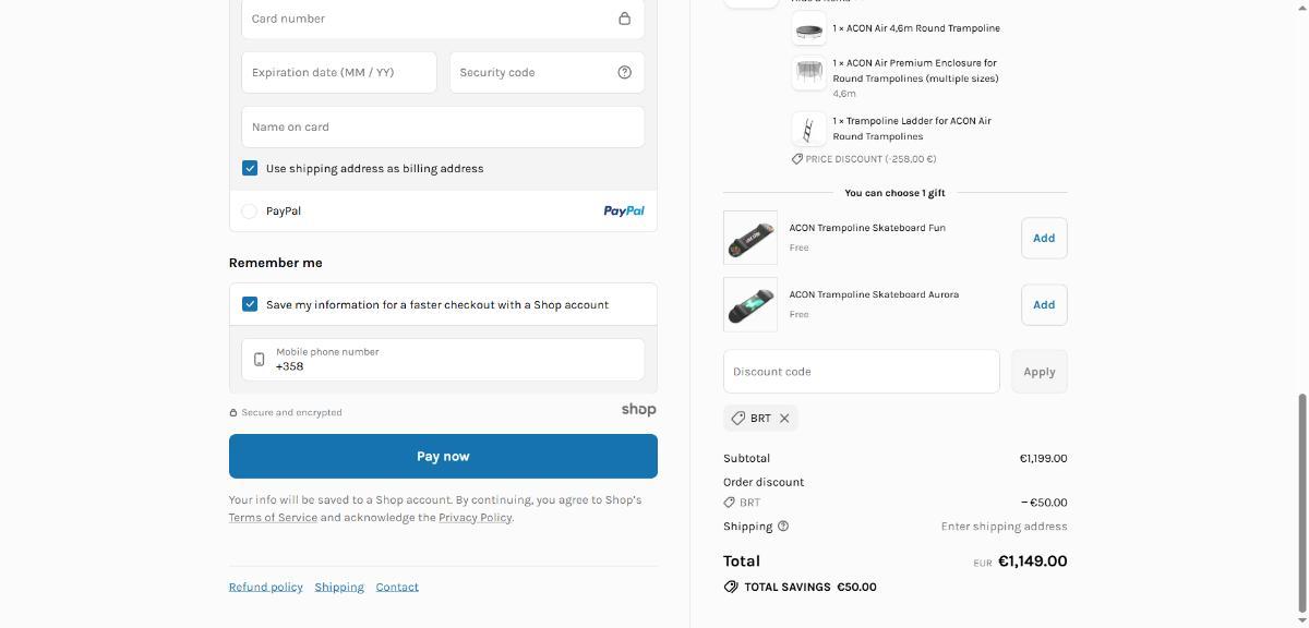 Use code BRT at checkout to save $15–$100 on ACON trampolines and accessories.