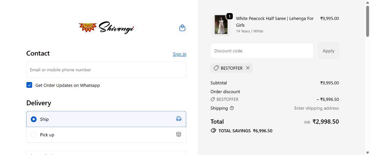Use promo code BESTOFFER at Shivangi Clothing to enjoy 70% off instantly.
