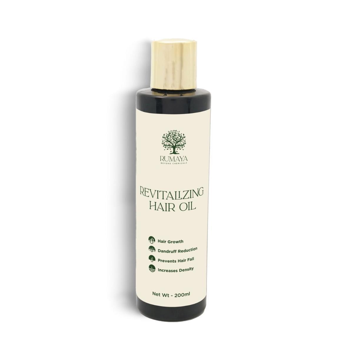 Rumaya Organic Hair Oil is a 100% pure, chemical-free blend of nourishing oils and powerful ayurvedic herbs designed to strengthen hair roots, reduce hair fall, and improve overall hair health. Made with traditional ingredients and no added chemicals, this hair oil deeply nourishes the scalp, supports natural hair growth, and restores softness and shine with regular use.